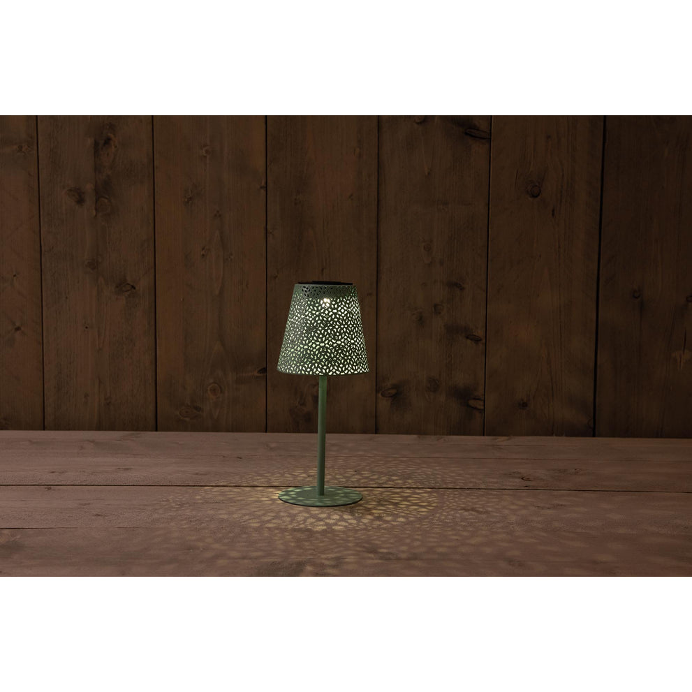 SOLAR TAFELLAMP GROEN METAAL 12X12X28CM/1LED WARM WIT