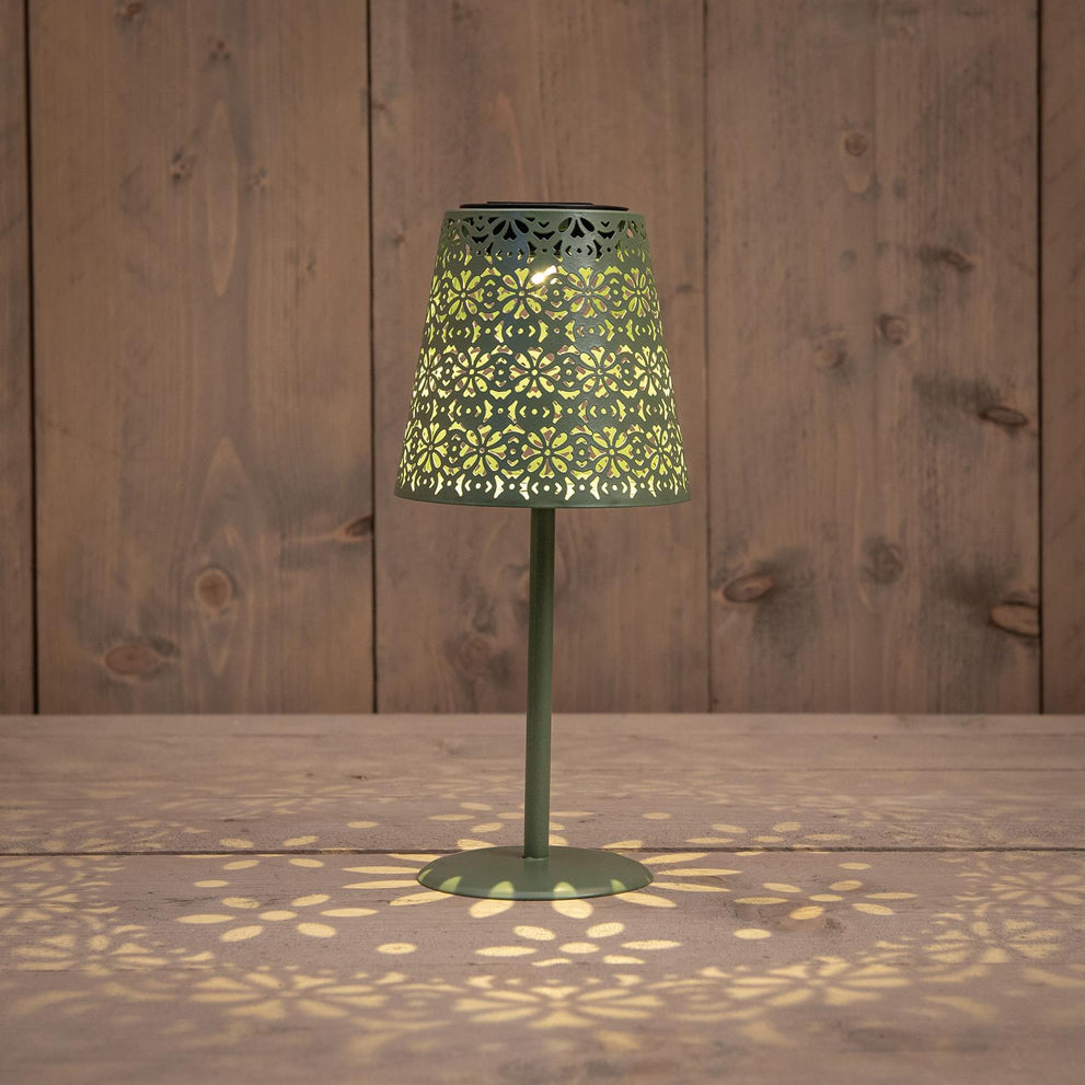 SOLAR TAFELLAMP SAGE GROEN METAAL 12X28CM/1LED WARM WIT
