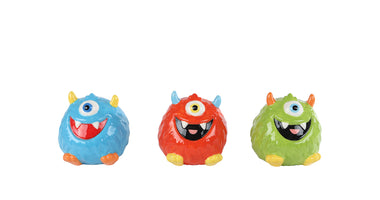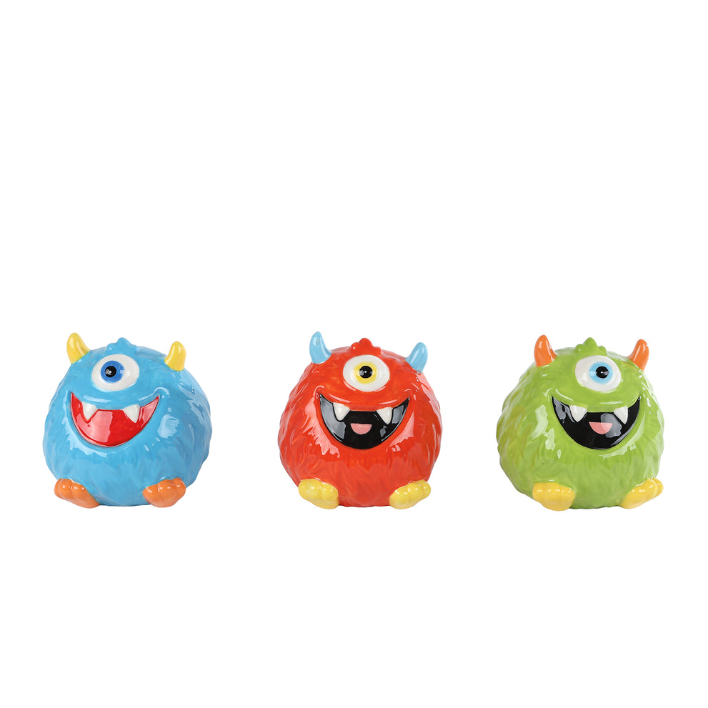 Spaarpot "Monster" blauw/rood/groen 3 assortie aardewerk 8x8x8cm