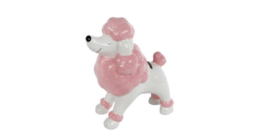 Spaarpot "Poedel" zacht roze aardewerk 16,5x9x18cm