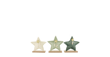 Star fabric with wooden base 18.5x4x18.5cm Green Mixed