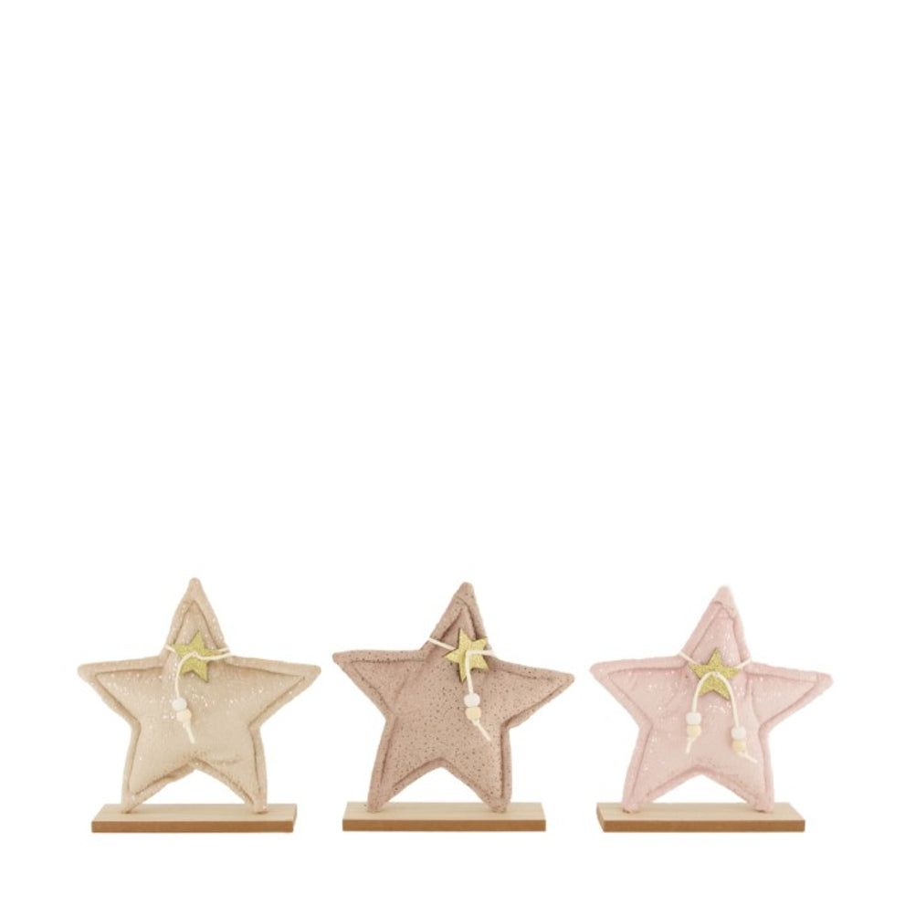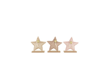 Star fabric with wooden base 18.5x4x18.5cm Mixed brown