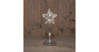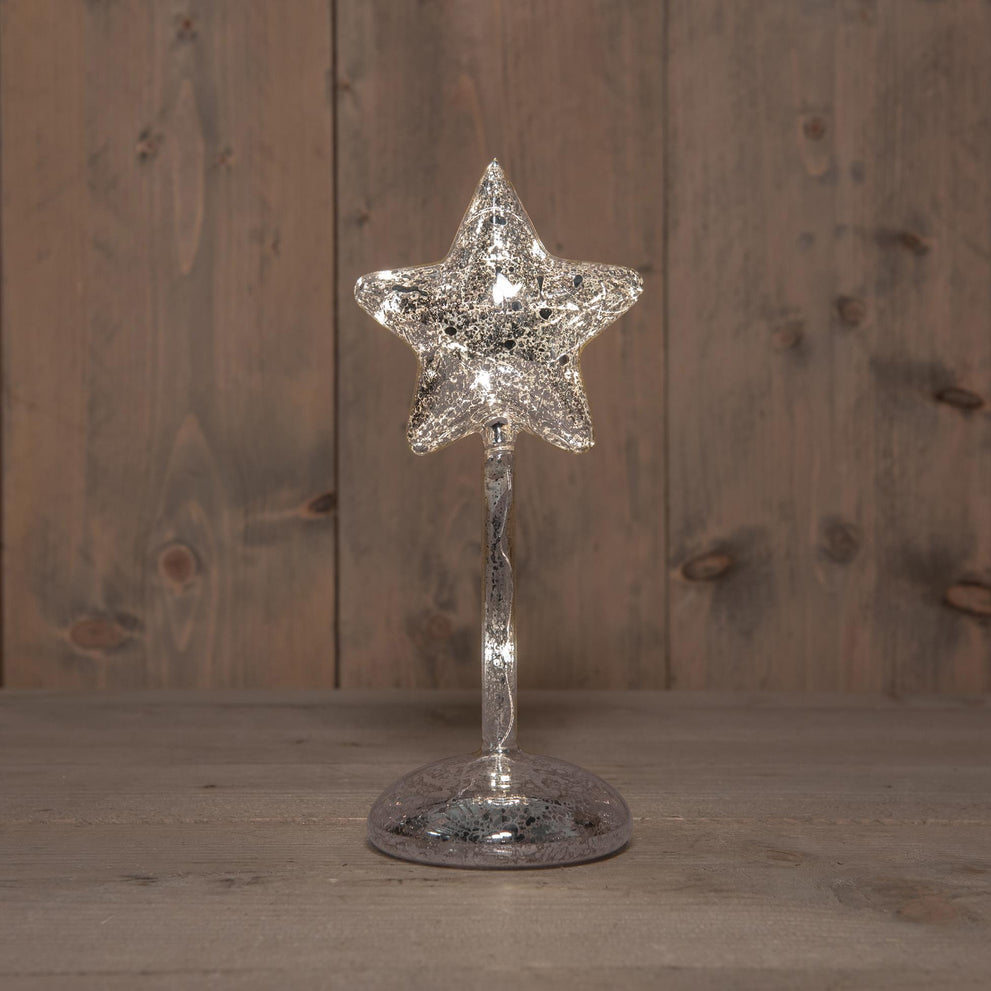 STER OP STAM GLAS LED OP BATTERIJ MET TIMER H23.5CM ZILVER