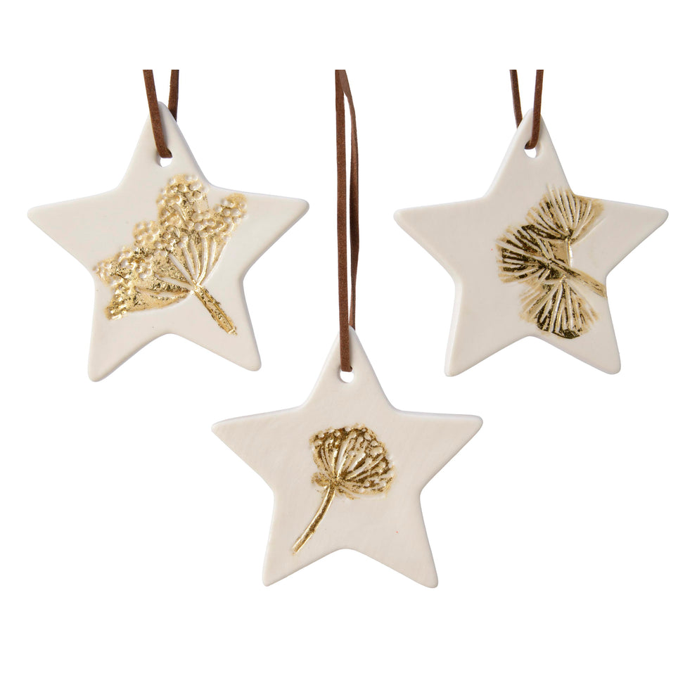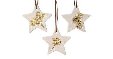 Ster porselein 3 assortie wit met opdruk 7,5x7,5x0,5cm