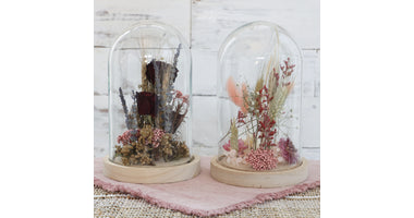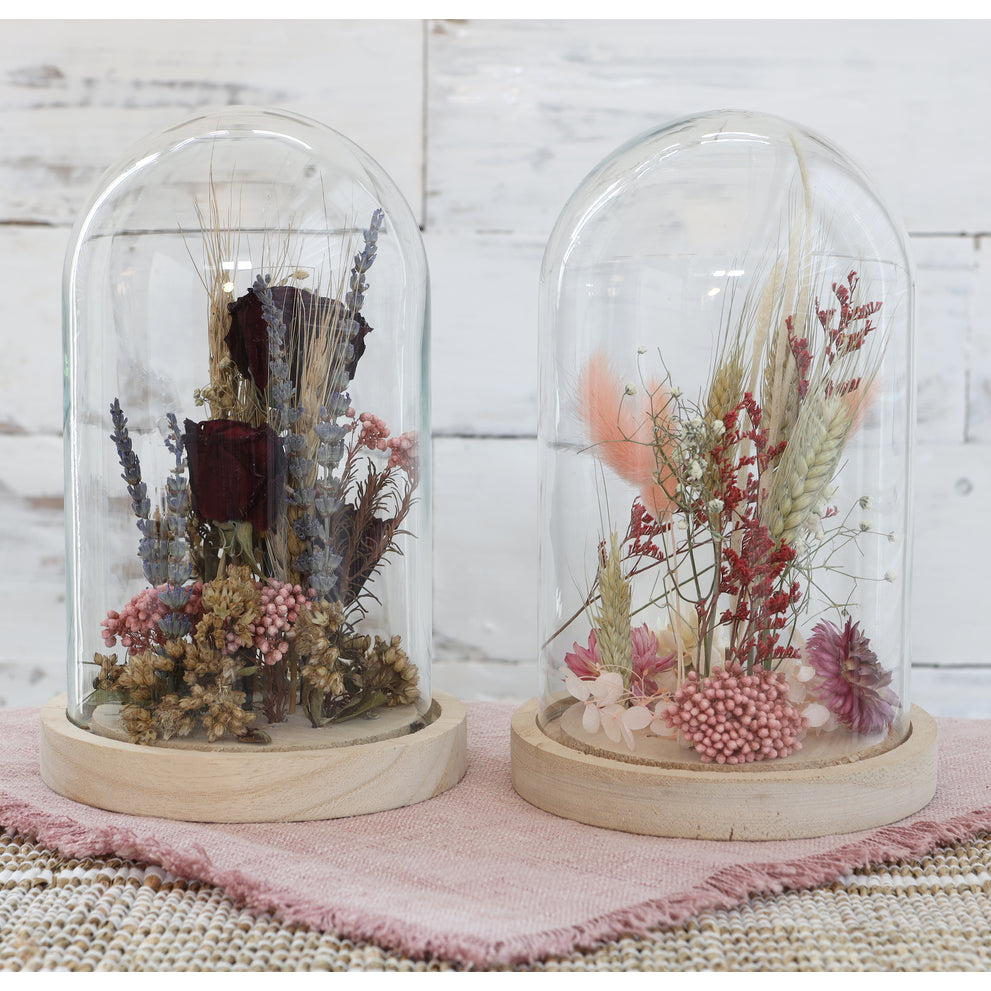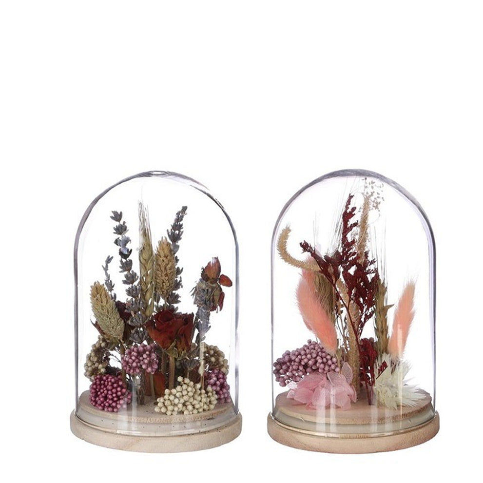 Stolp met droogbloemen 2 assortie - Ø10 h.16 cm - pink/burgundy