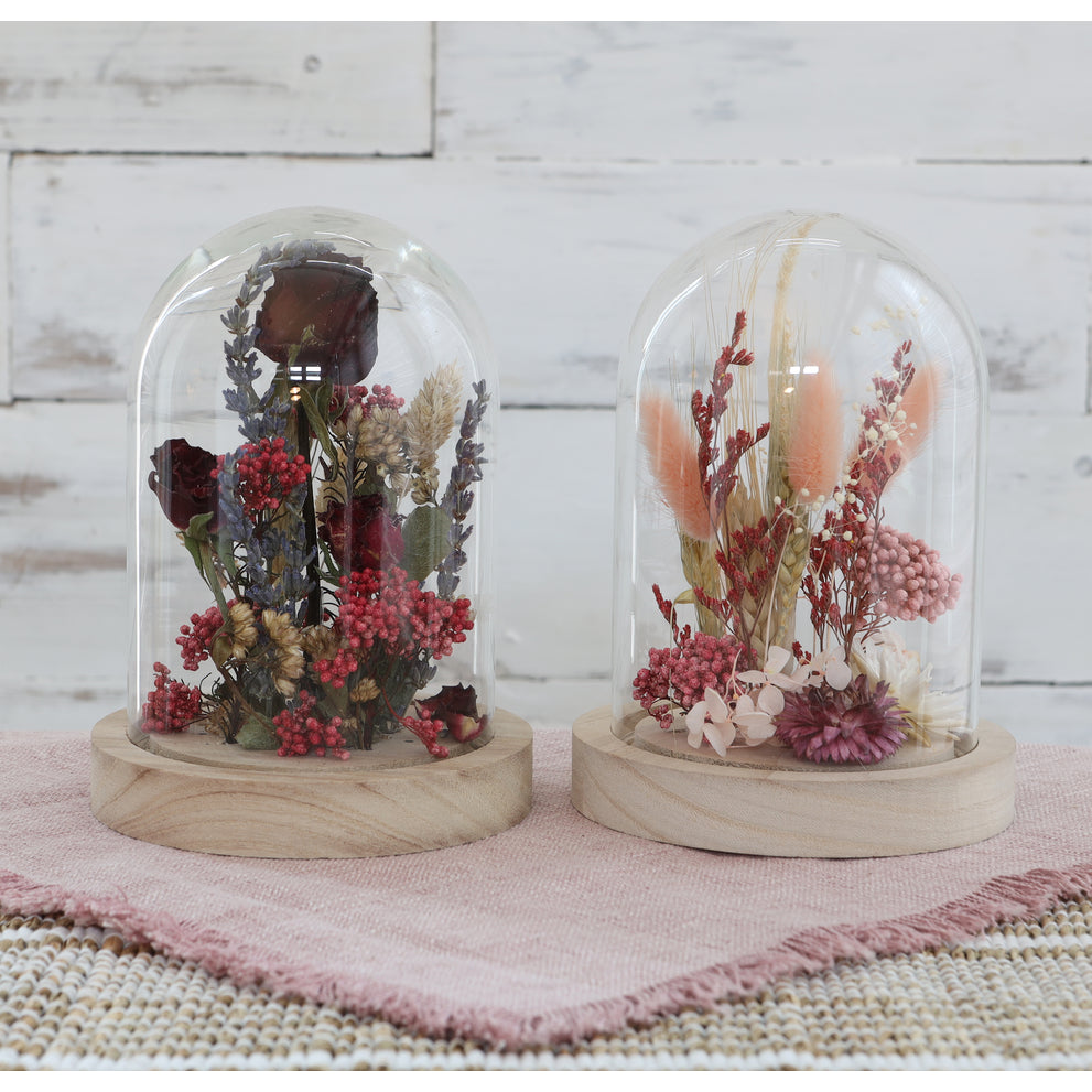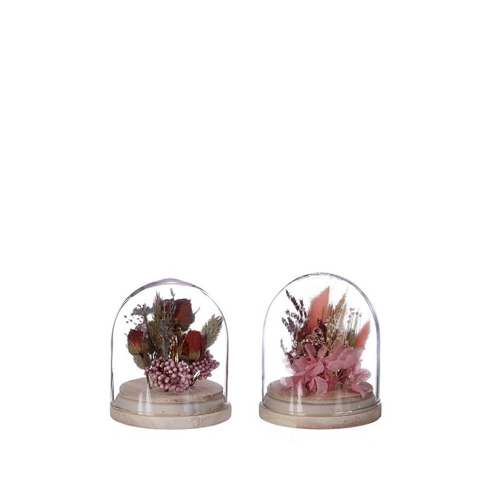 Stolp met droogbloemen 2 assortie - Ø8 h.10 cm - pink/burgundy