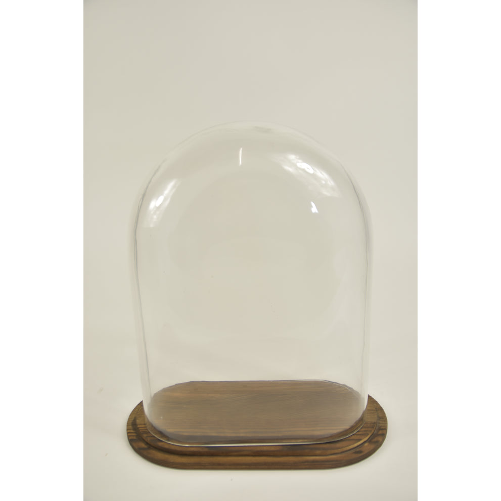 Stolp ovaal L helder glas 24x12,5x30cm bruin houten plateau