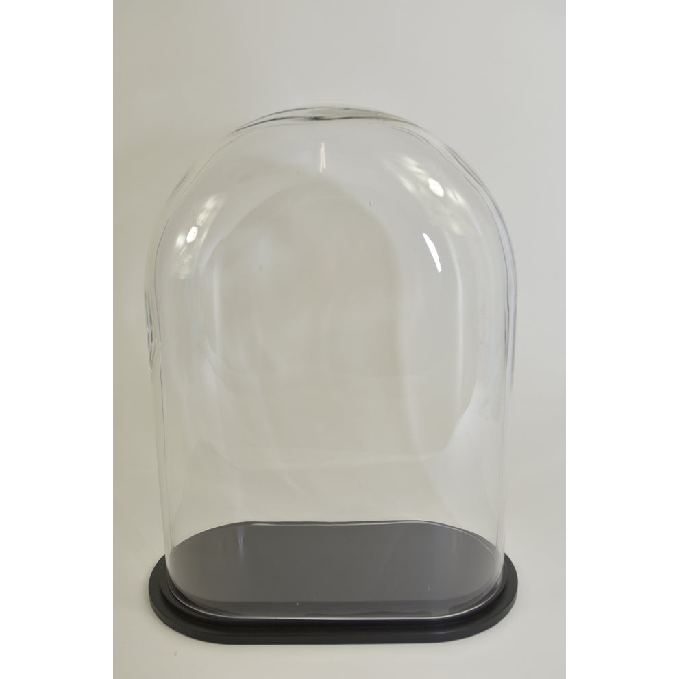 Stolp ovaal XL helder glas 30x16x40cm zwart houten plateau