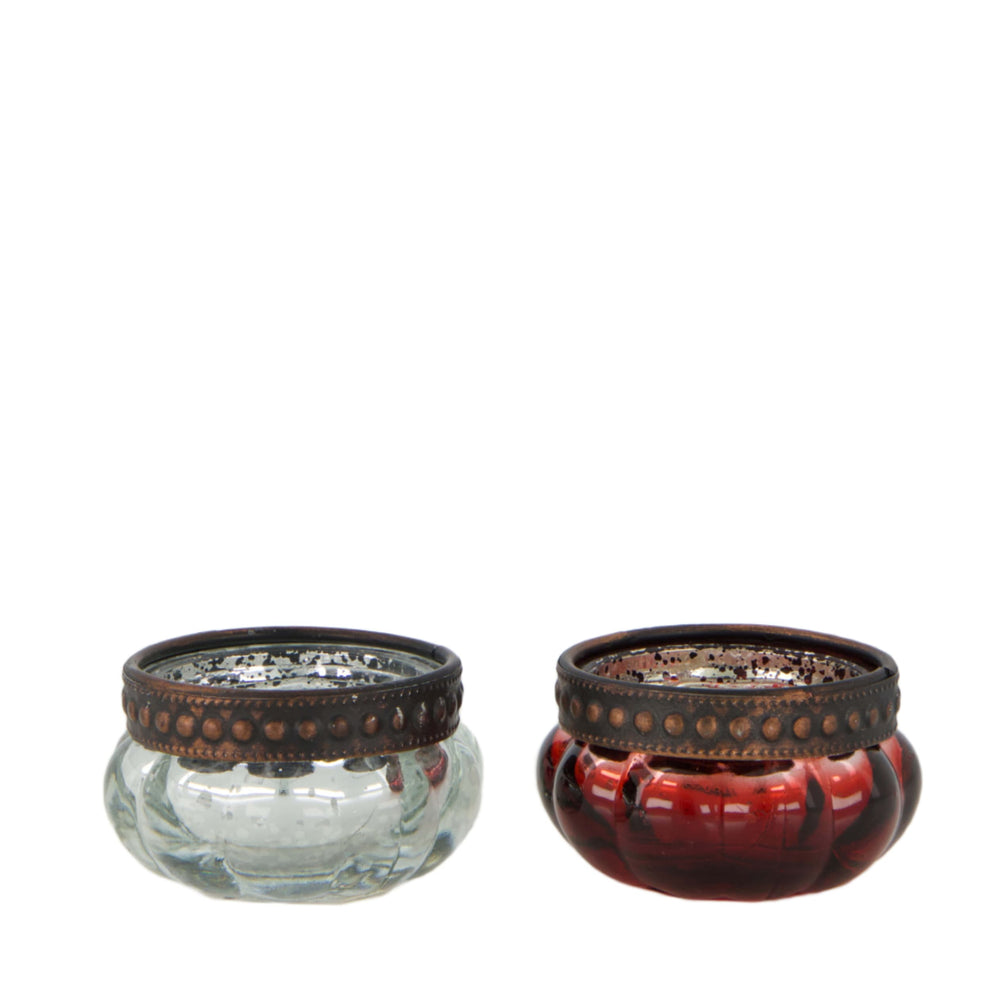 Tealight holder glass 5.5x5.5x3.5cm Silver mixed