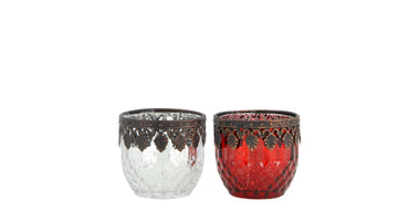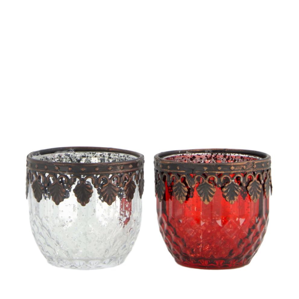 Tealight holder glass 6.5x6.5x6cm Silver mixed