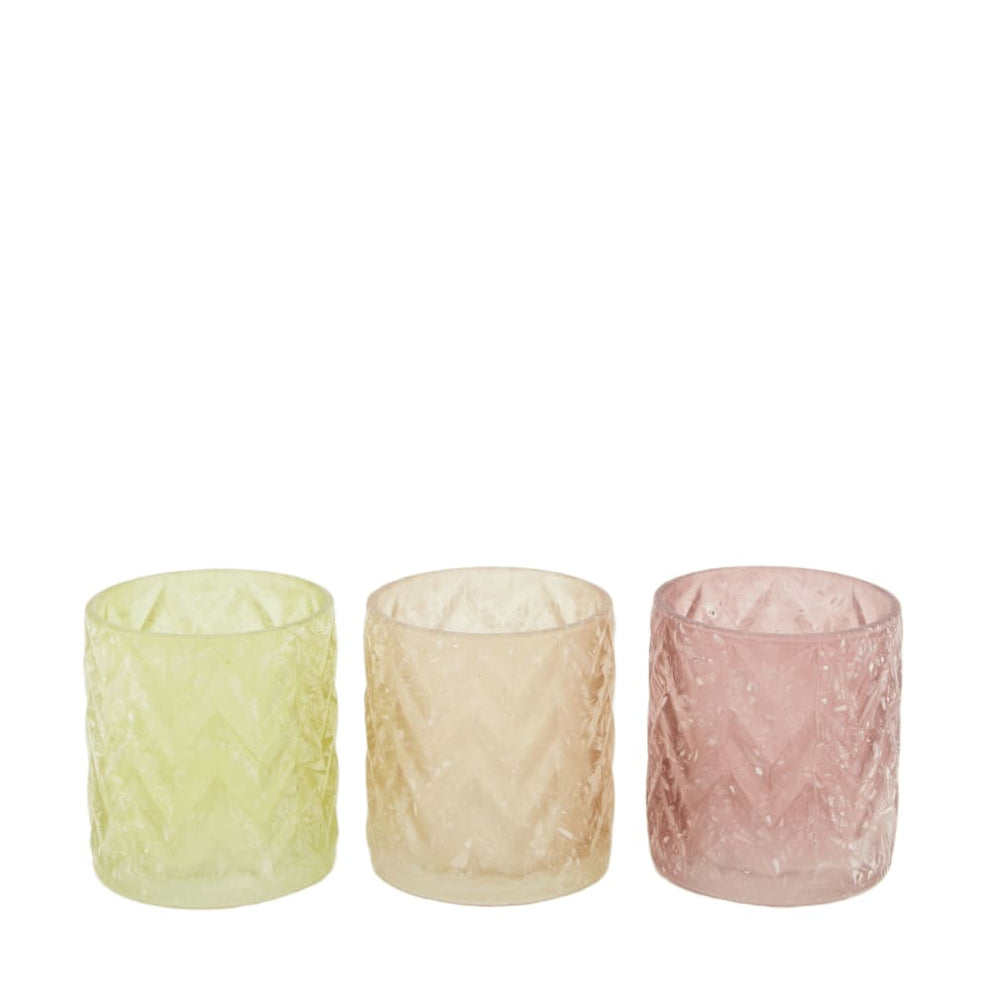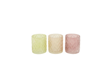 Tealight holder glass 7.3x7.3x8cm 3 Mixed pink