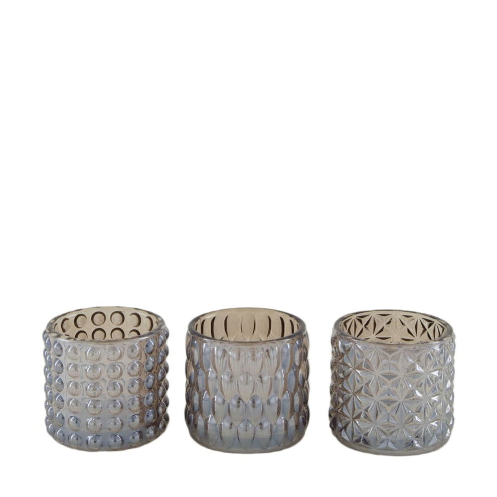 Tealight holder glass 7x7x6.8cm 3 Dark brown mix