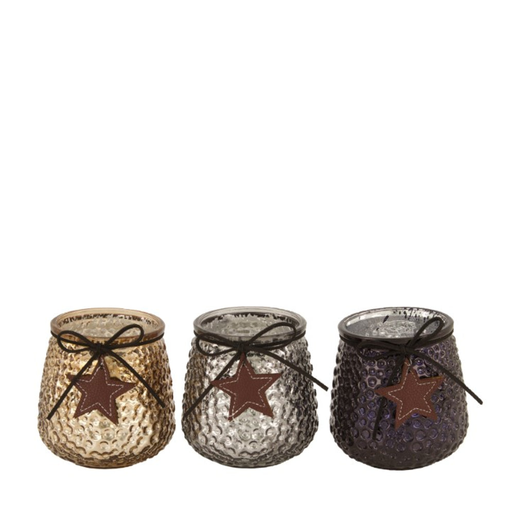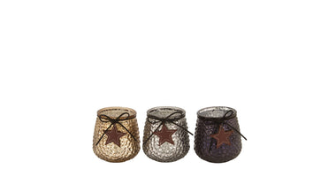 Tealight holder glass ''star'' Ø9.5x10cm Mixed grey