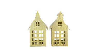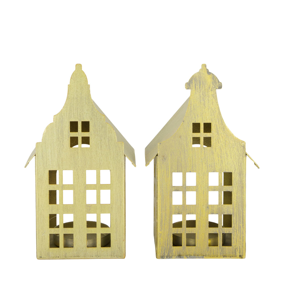 Tealight holder house metal 10x7x18cm Mixed Gold