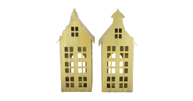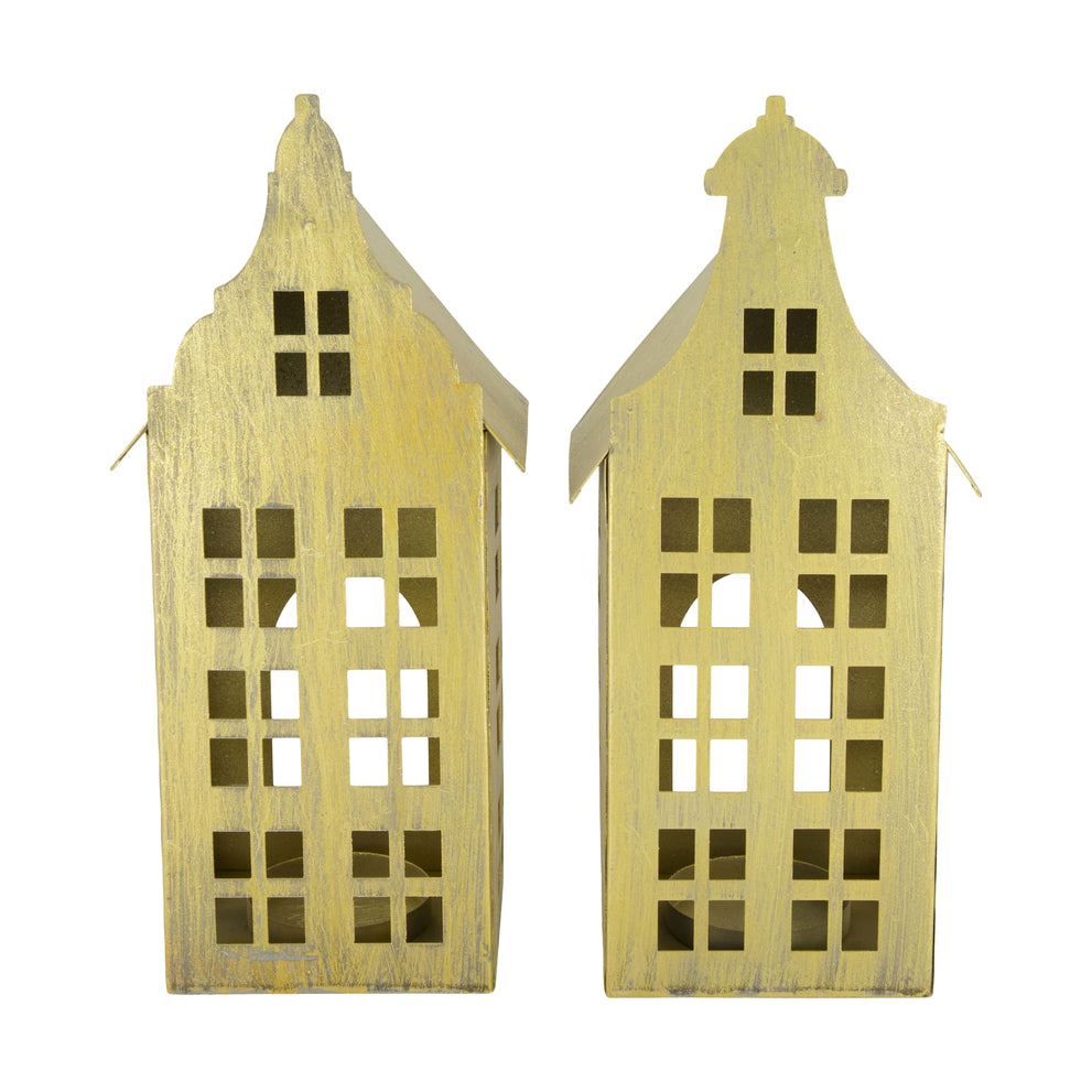 Tealight holder house metal 12x9x28cm Mixed Gold