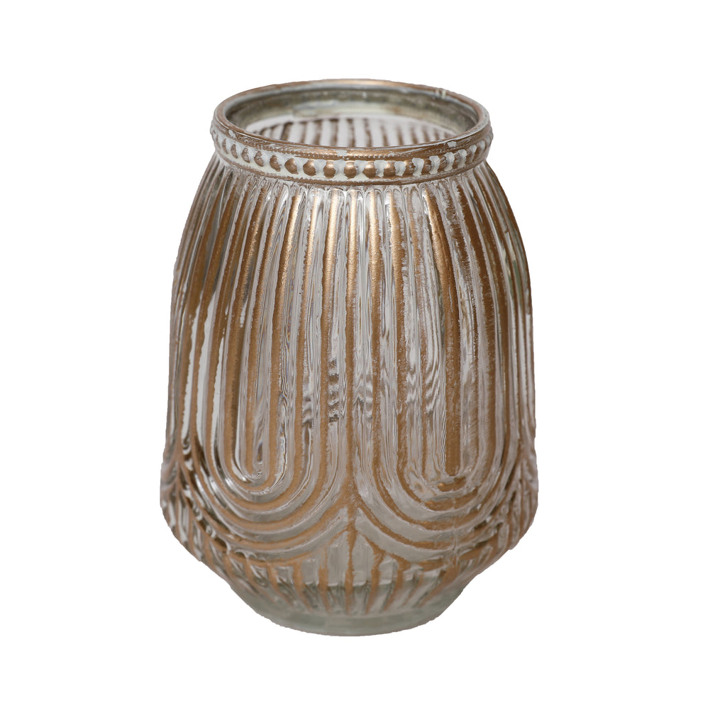 Tealight Holder Loag D9 H12cm Clear/Gold