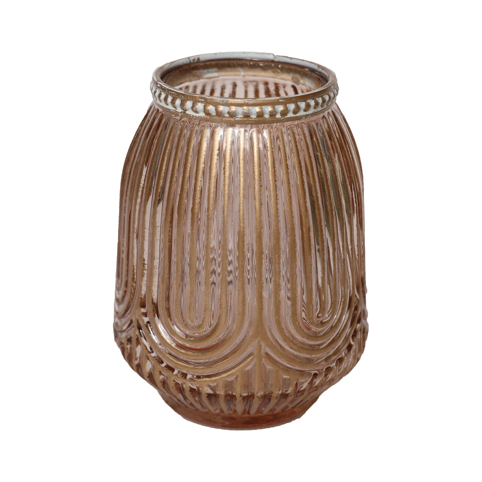 Tealight Holder Loag D9 H12cm Pink/Gold