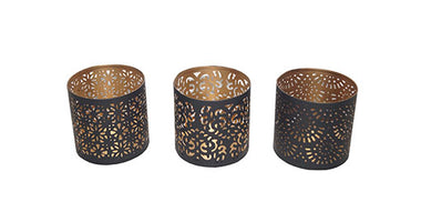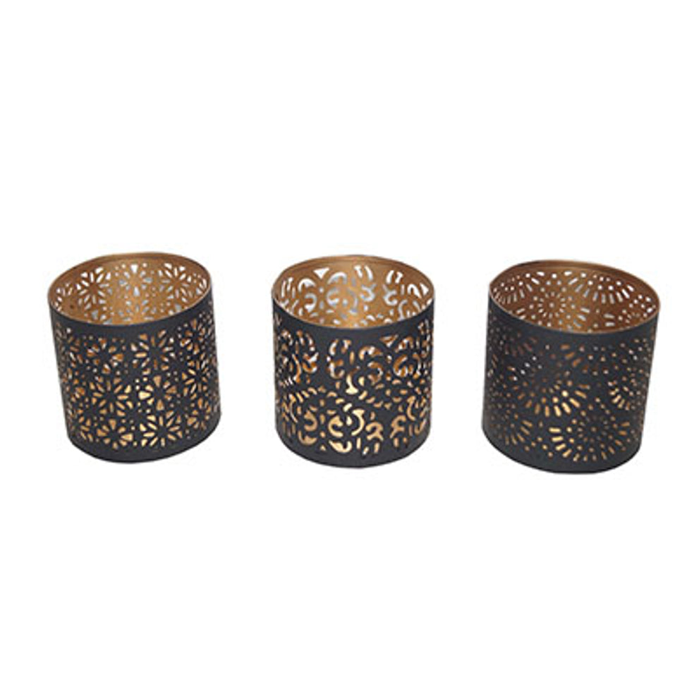 Tealight Holder Tolgoi 3 assorted 6x4x6cm Black/Gold