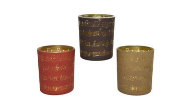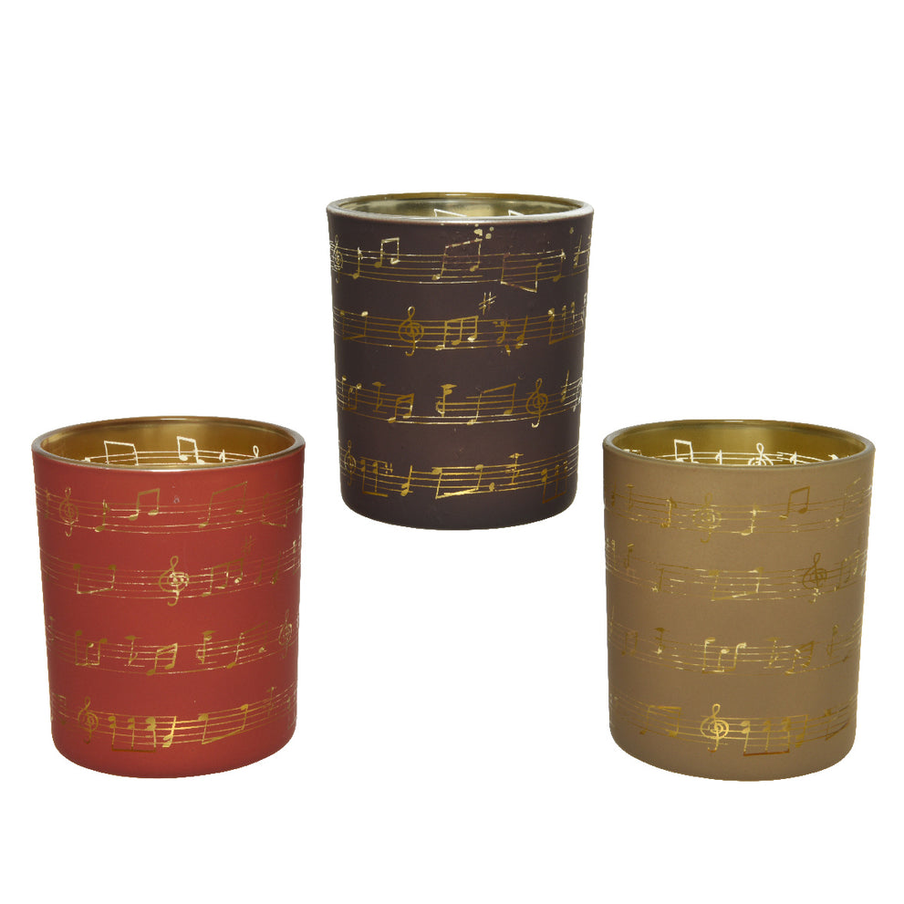 Tealightholder glass matt laser musical notes D7 H8,3cm 3 colors assorted