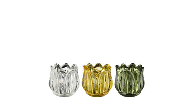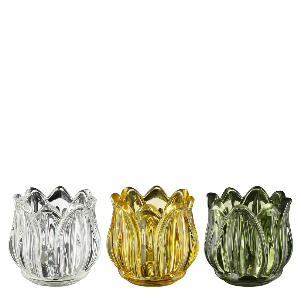 Theelicht houder glas groen geel 3 assorti - h6,5xd7cm