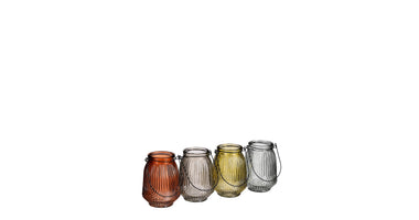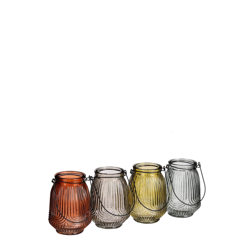 Theelicht houder groen rood blauw l.bruin ass - h12,5xd8,5cm