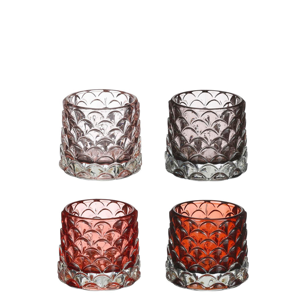 Theelicht houder off white grijs roze bruin 4 assorti - h7xd7cm