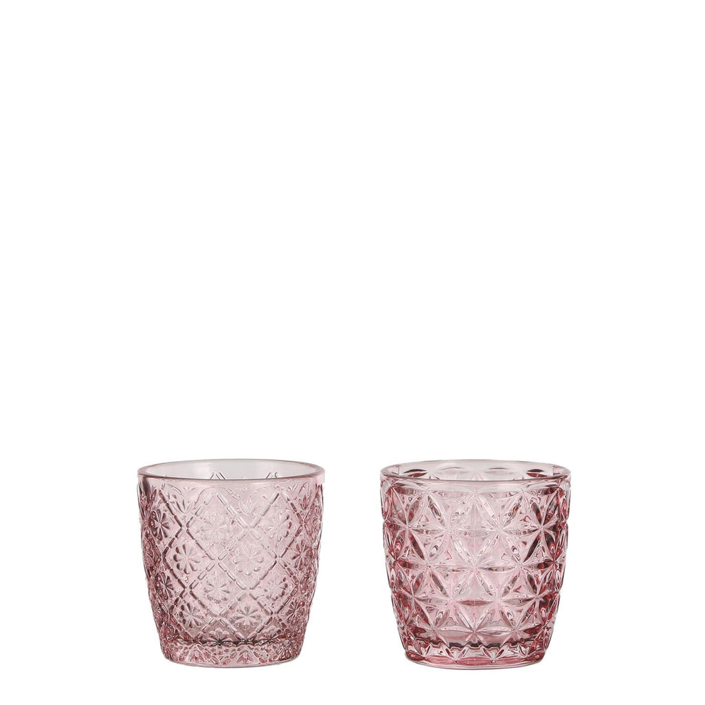 Theelicht houder rose 2 assorti - h7,5xd7cm