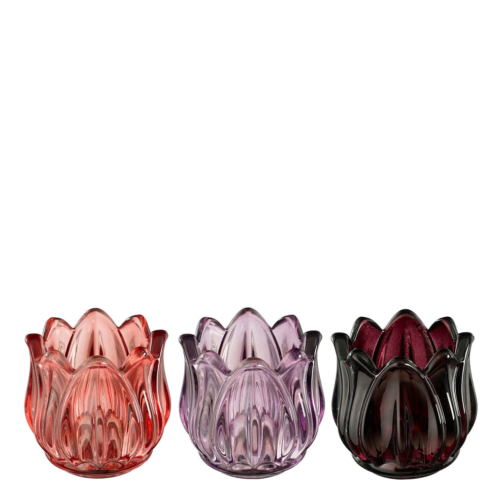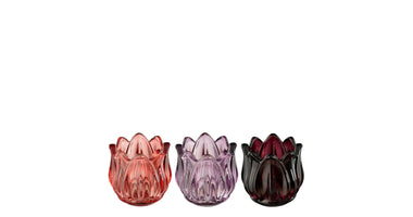 Theelicht houder roze lila paars 3 assorti - h6,5xd7cm