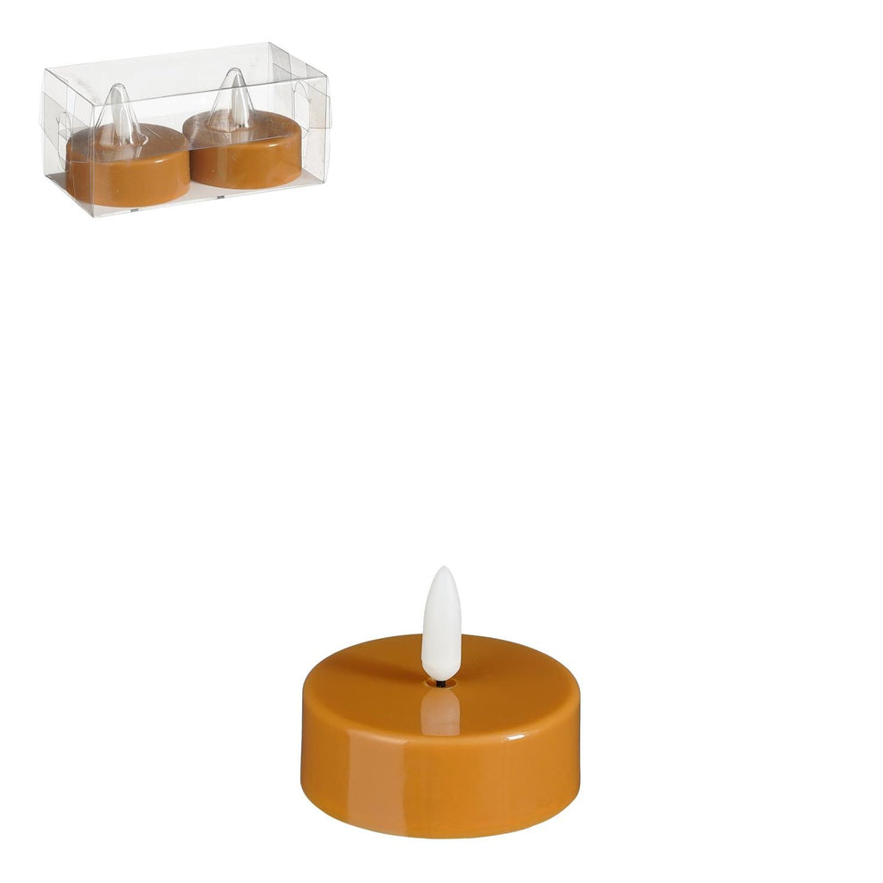 Theelicht led bruin 2 stuks battery operated - h4,6xd5,8cm