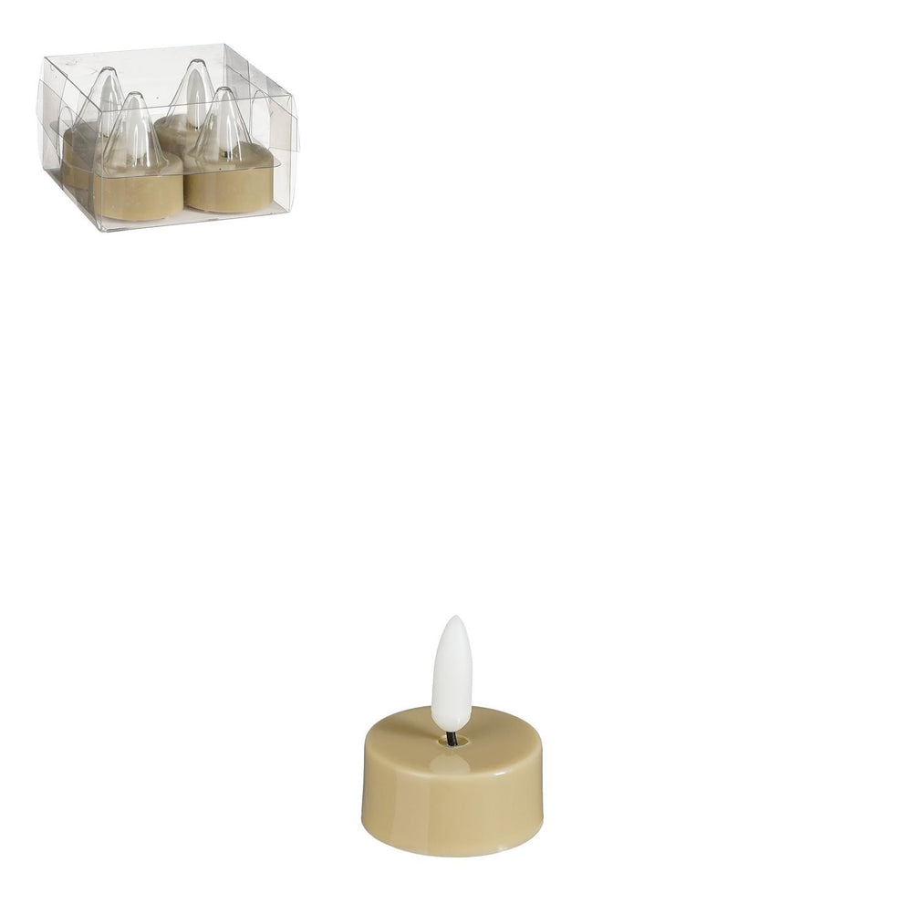 Theelicht led taupe 4 stuks battery operated - h4,6xd3,8cm