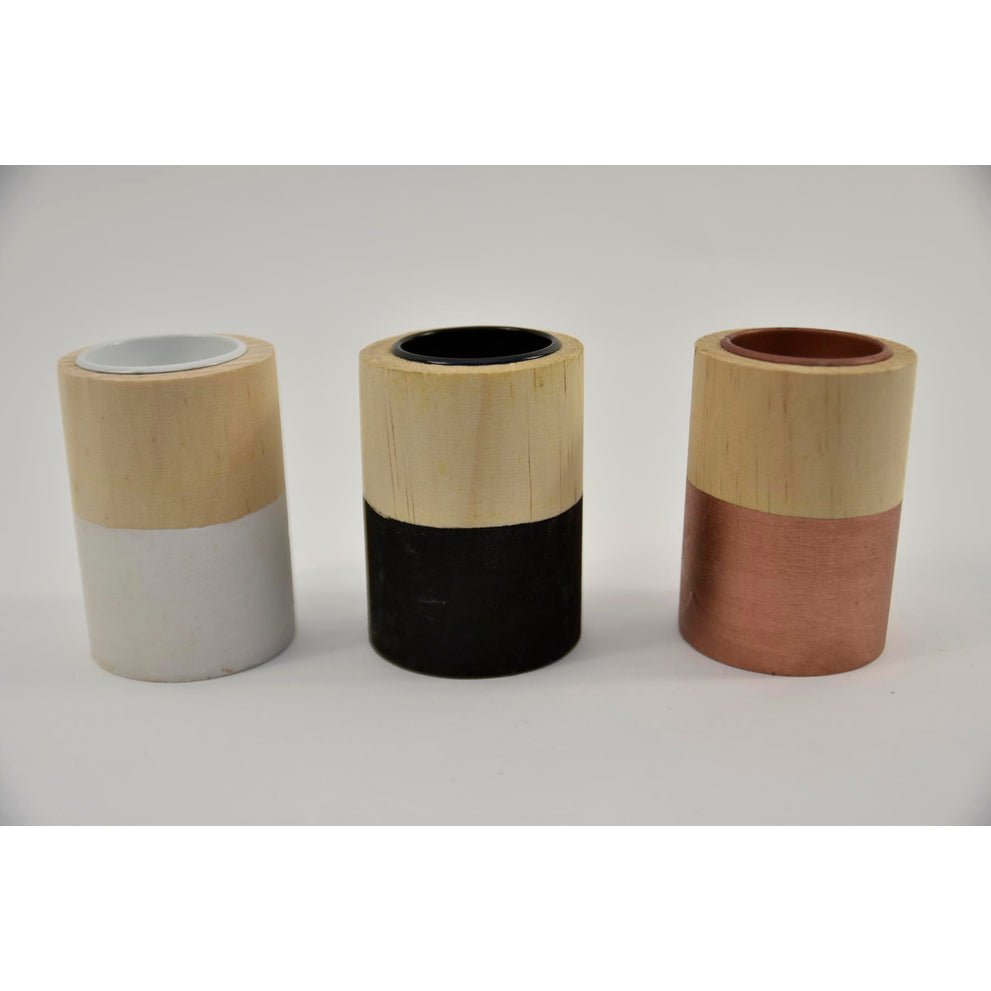 Theelichth. 6x8,5cm 3ass. zwart,wit,koper