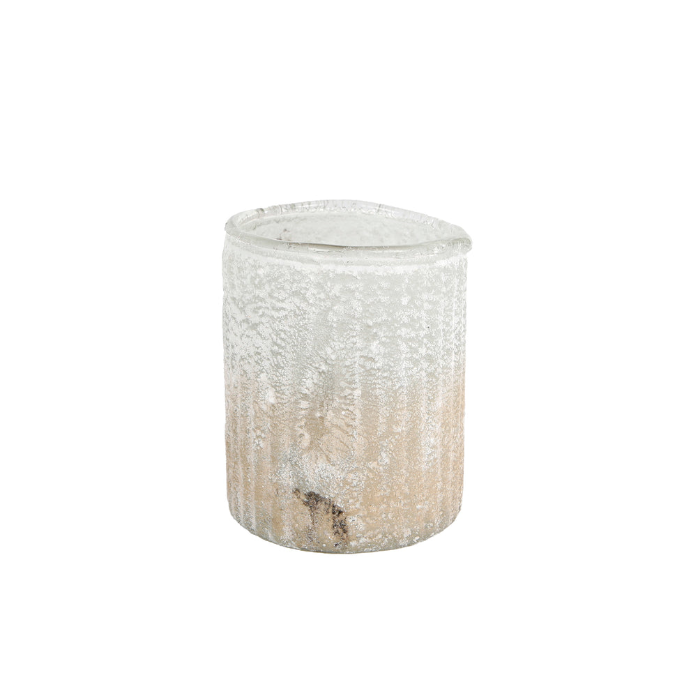 Theelichth "Bianca" crème/bruin glas 7x7x8,5cm