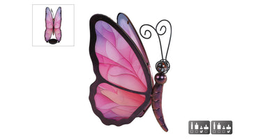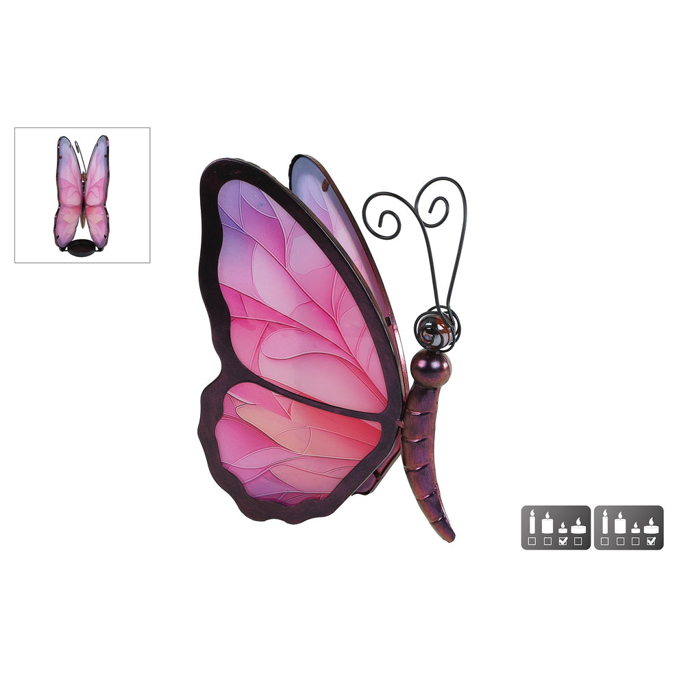Theelichth "Butterfly" roze/paars glas/metaal 17,5x14x25cm
