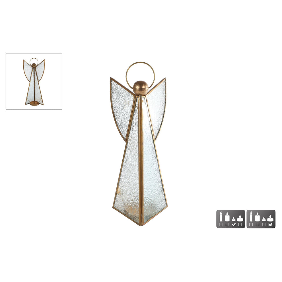 Theelichth "Engel" L helder/messing glas/metaal 15x15x34cm