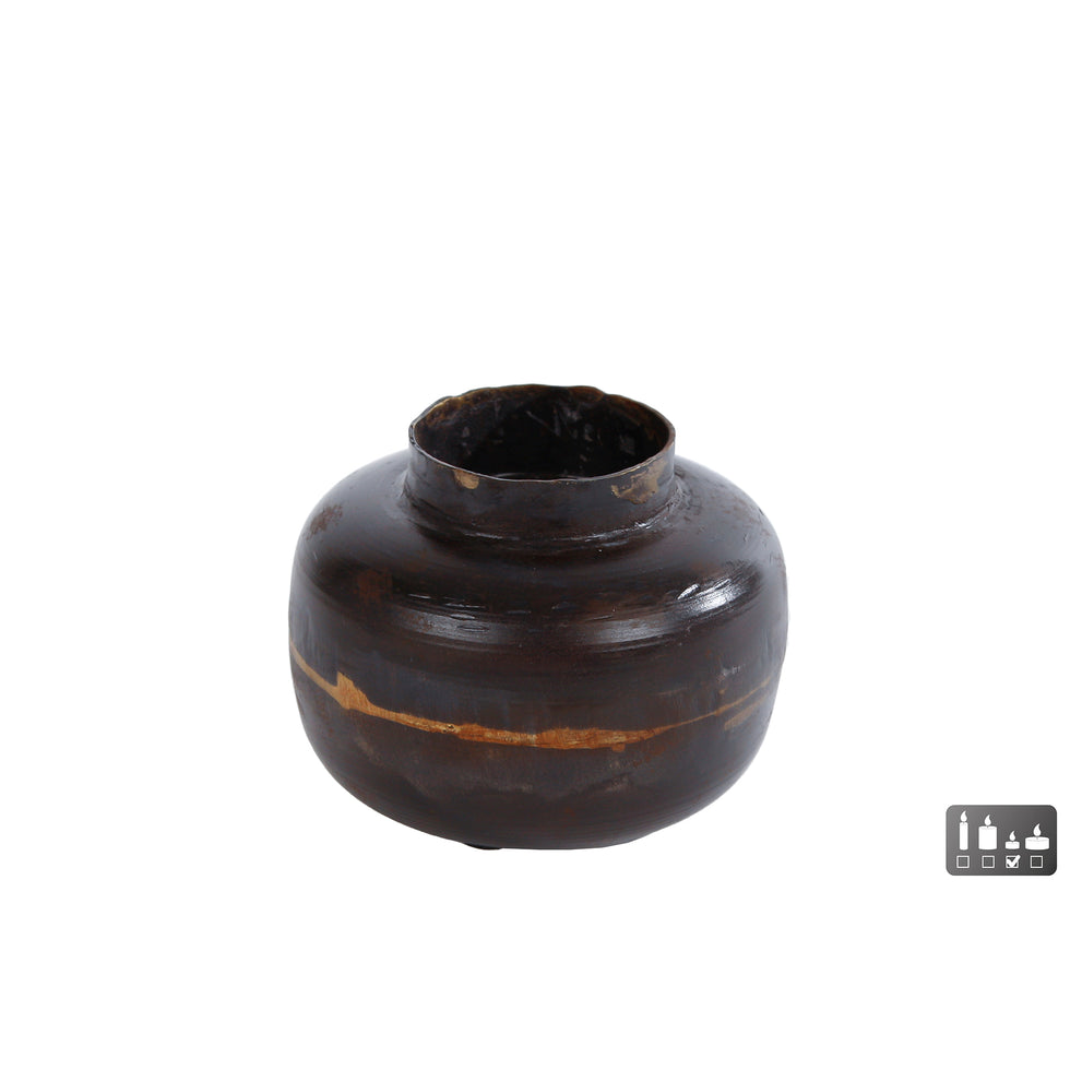 Theelichth "Hidde" antiek bruin metaal 8x8x6cm
