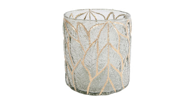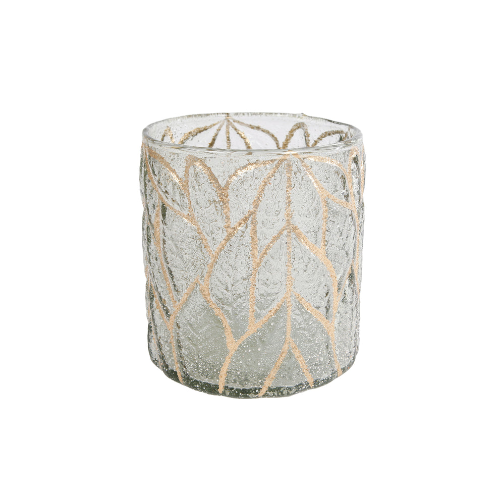 Theelichth "Leaves" L helder/goud glas 14x14x15cm