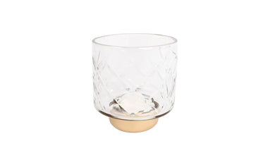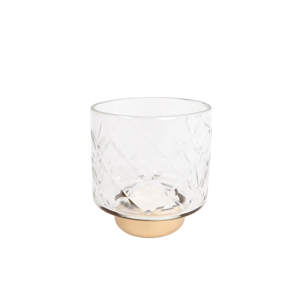 Theelichth "Ria" S helder/goud facet glas/metaal 3x3x3,5cm