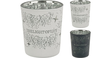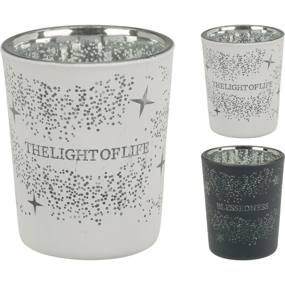THEELICHTHOUDER D5,5 H6,5 CM 2 ASSORTIE TEKST
