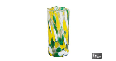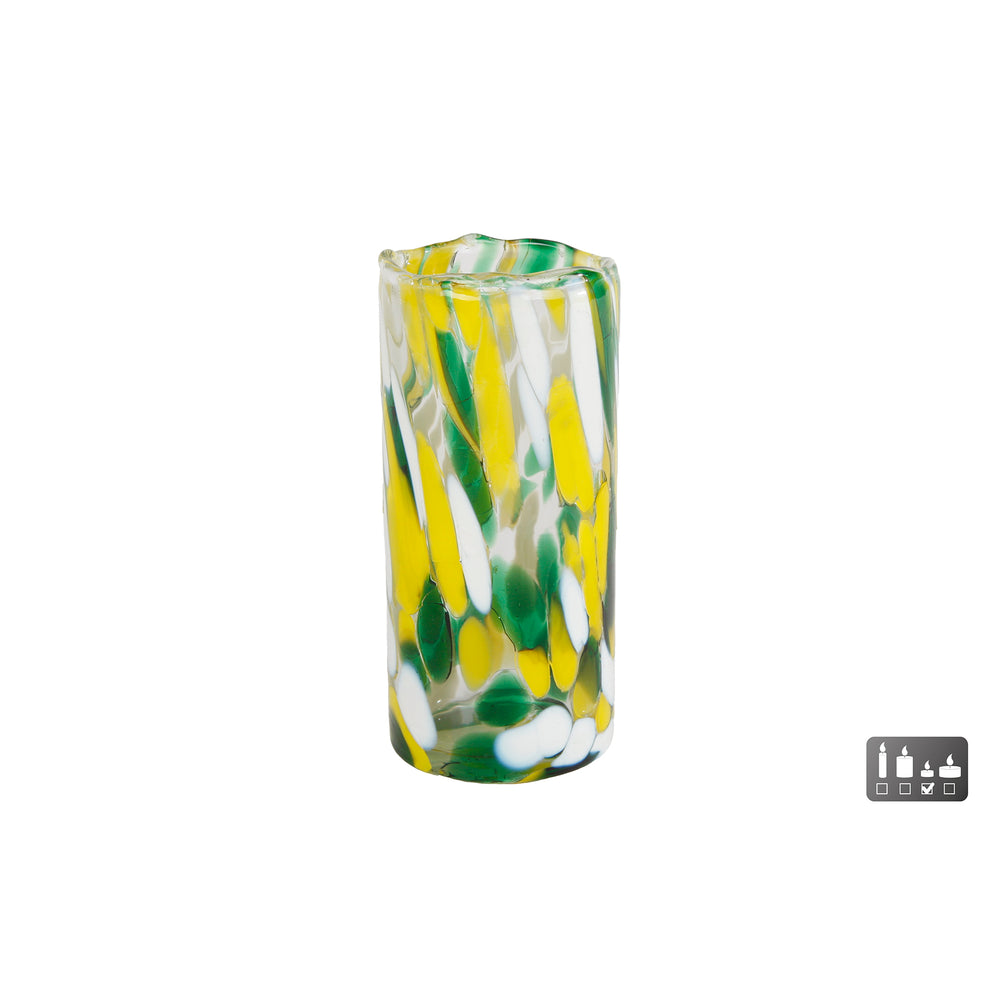 Theelichthouder "Dots" L geel/groen/wit glas 5,5x5,5x12cm