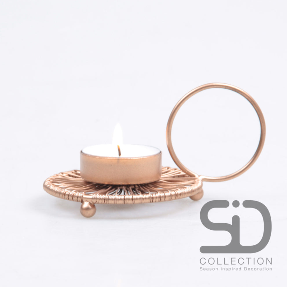 THEELICHTHOUDER DRAAD METAAL KOPER 11X8X6 CM