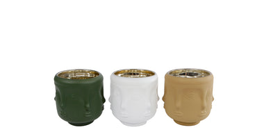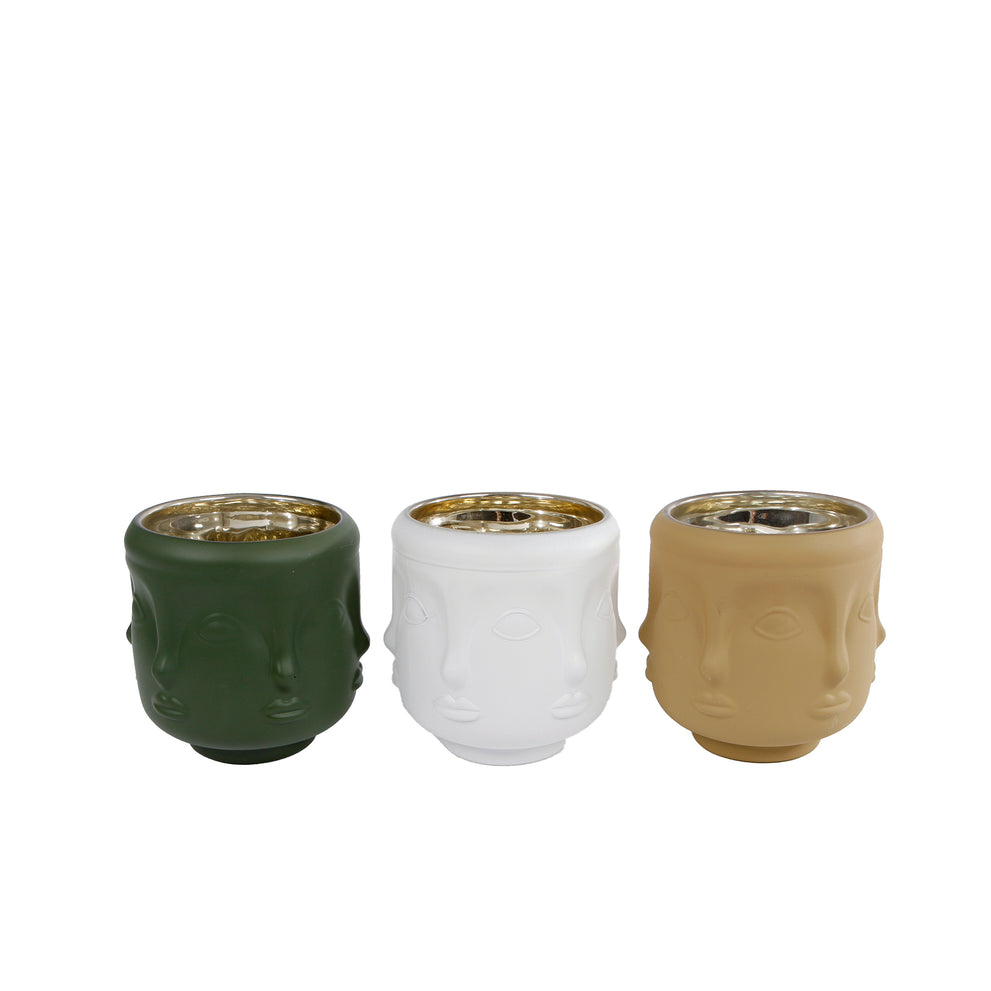 Theelichthouder "Faces" S 3 assortie glas 8x8x8cm