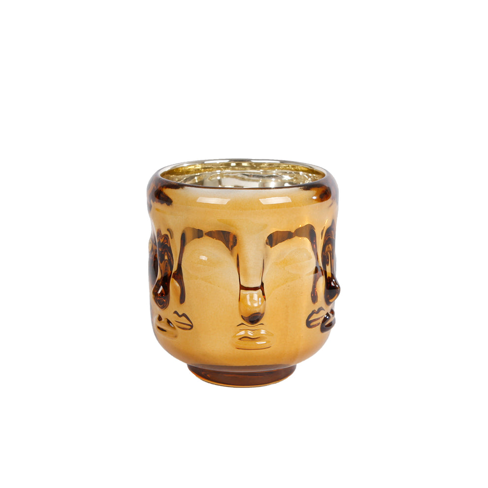 Theelichthouder "Faces" S gold glas 8x8x8cm
