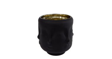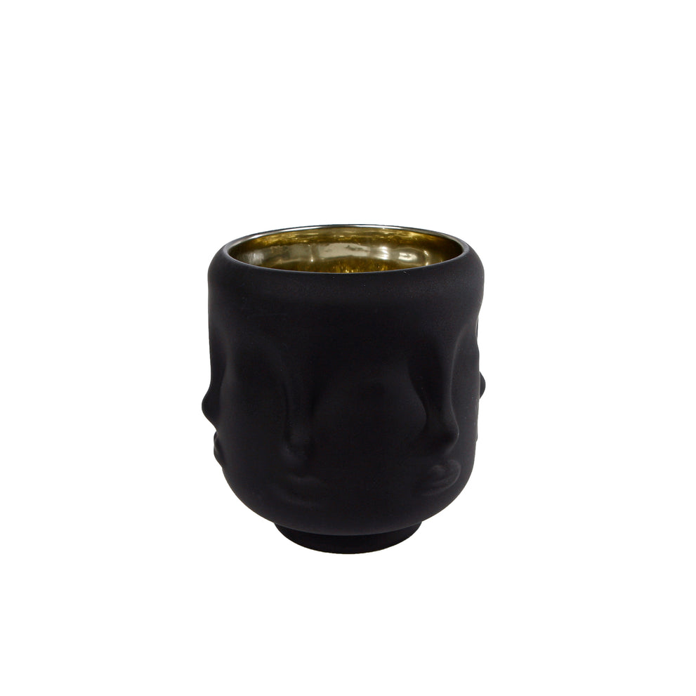 Theelichthouder "Faces" S zwart glas 8x8x8cm