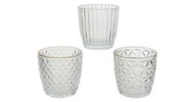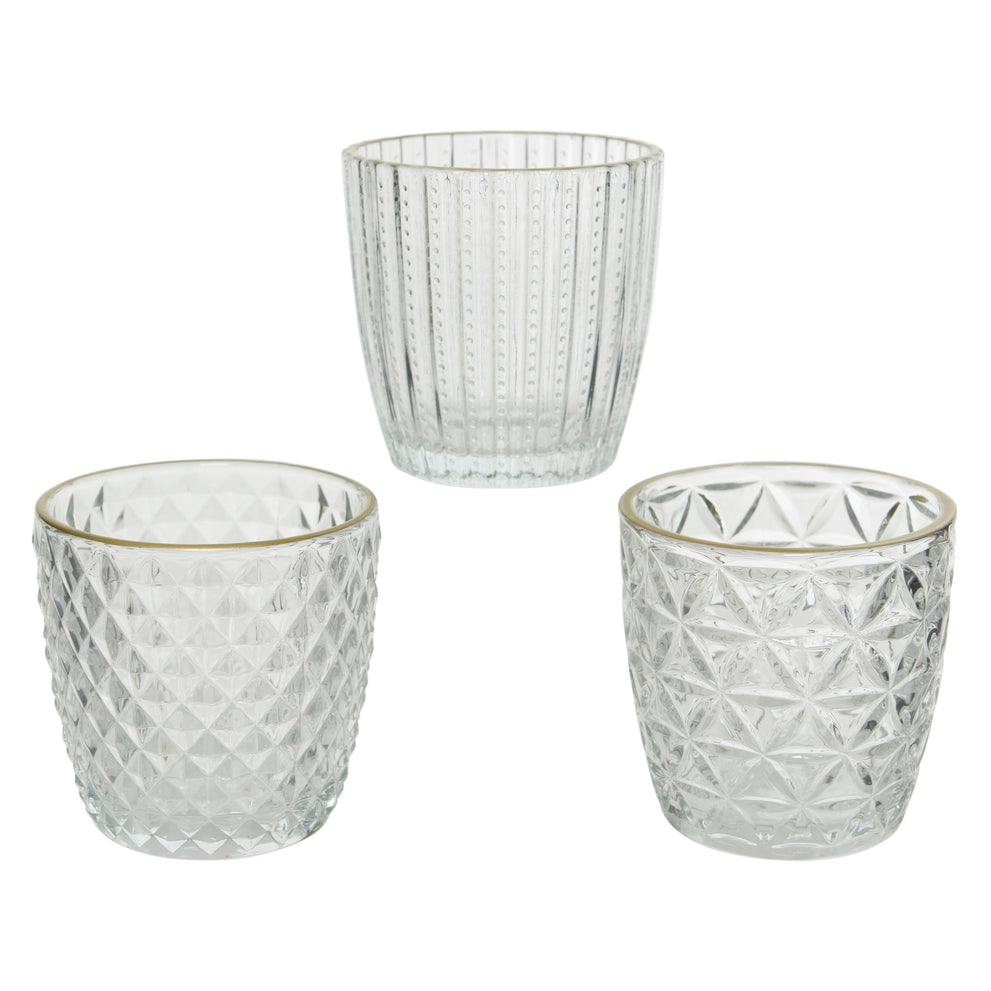 Theelichthouder glas gold edge 3 assorti helder D7,5H7,5cm