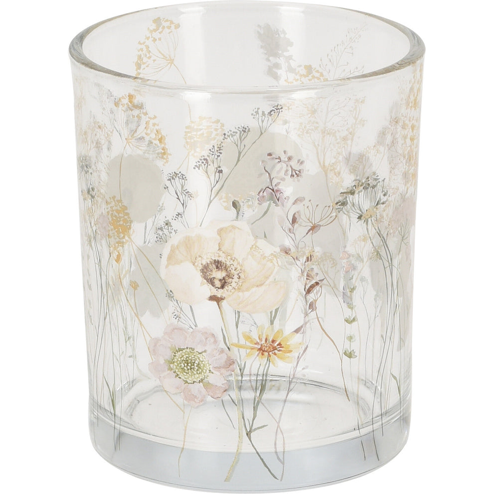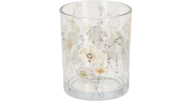 THEELICHTHOUDER GLAS MET BLOEMPRINT D7 H8CM