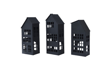 Theelichthouder huis ijzer zwart 10,5x8x25cm 3 assortie
