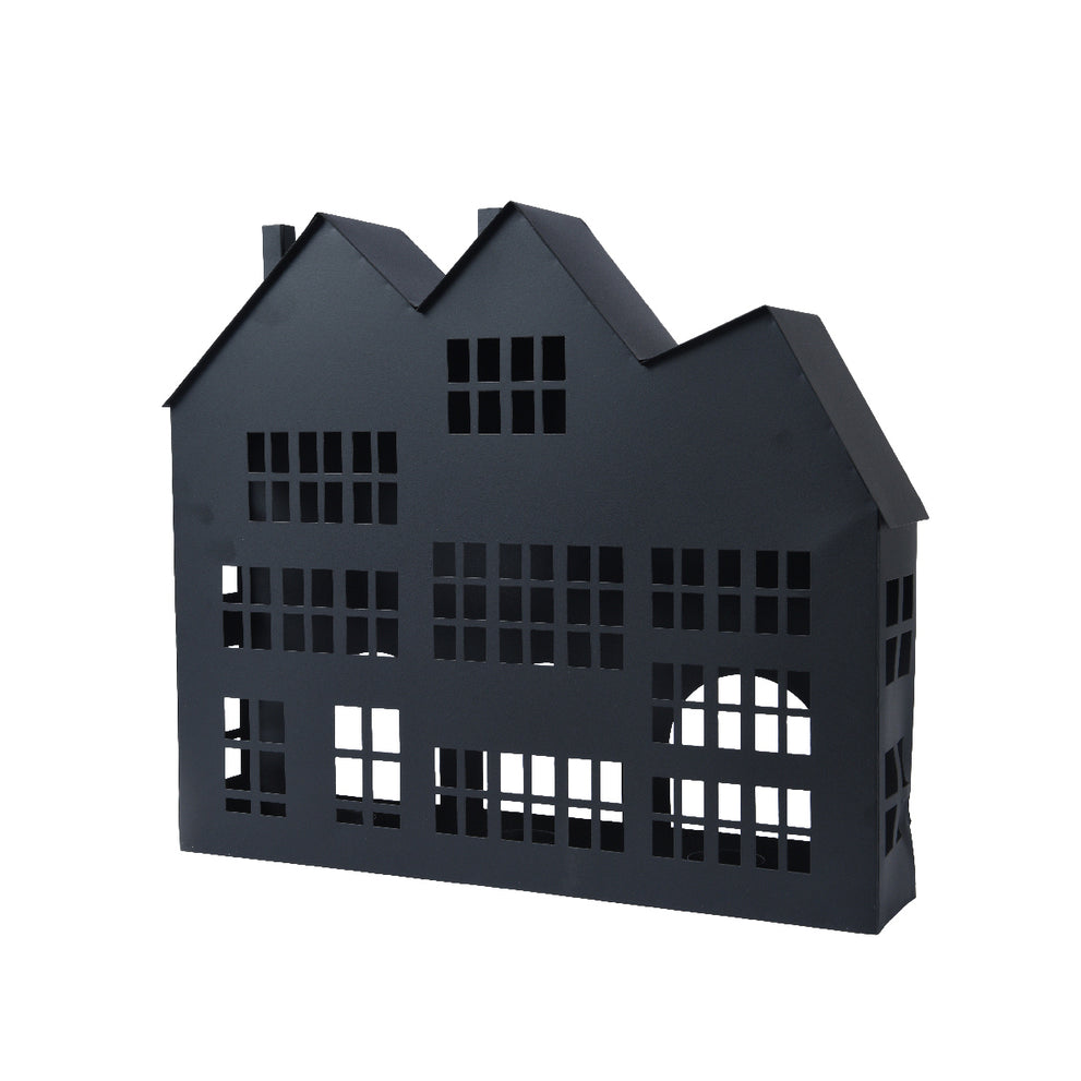 Theelichthouder huis ijzer zwart 44x9x37cm