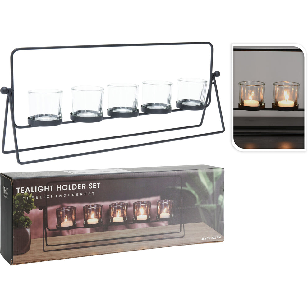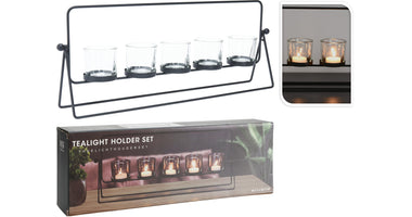 THEELICHTHOUDER METAAL VOOR 5 KAARSEN 50x7x20cm