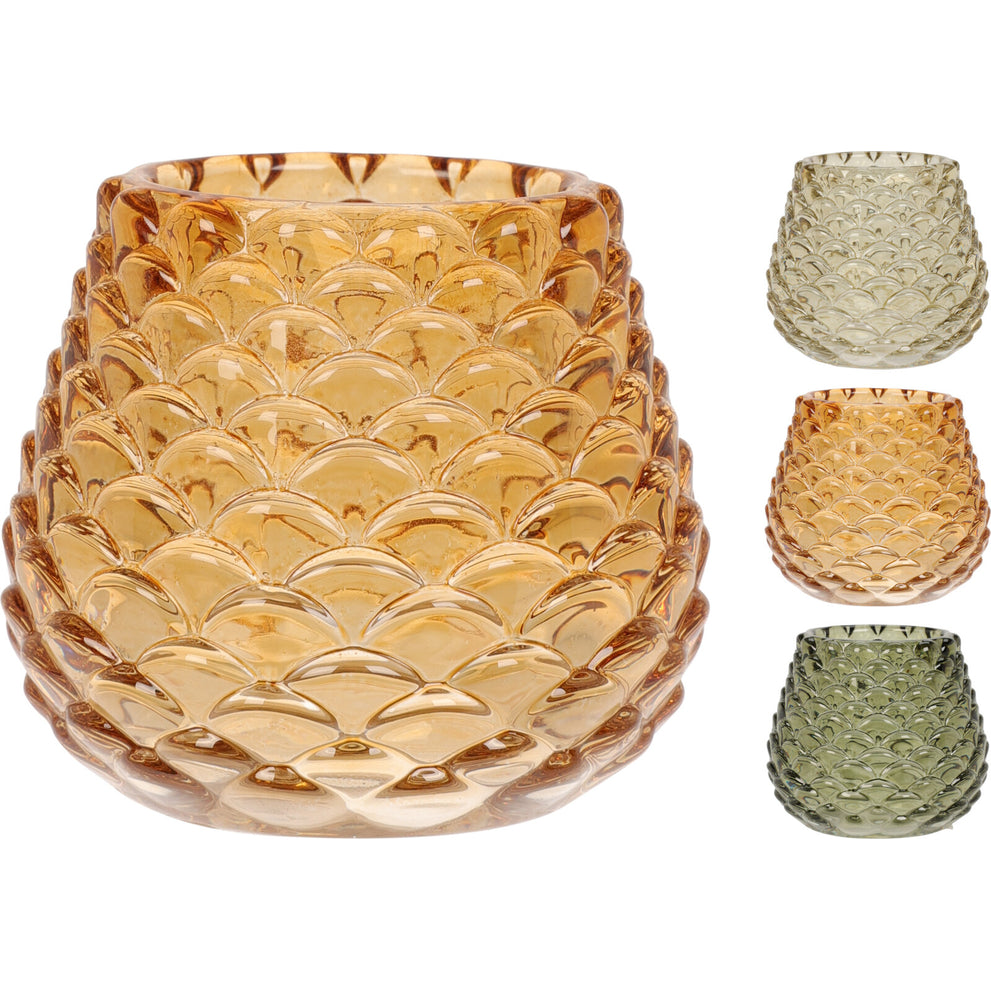 THEELICHTHOUDER ''PINE'' D7 H6,5CM 3 ASSORTIE KLEUREN