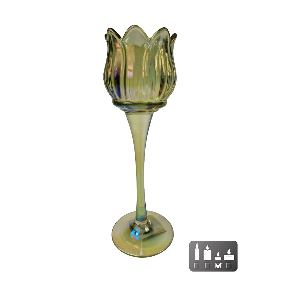 Theelichthouder "Tulip" L luster groen glas 7x7x22cm